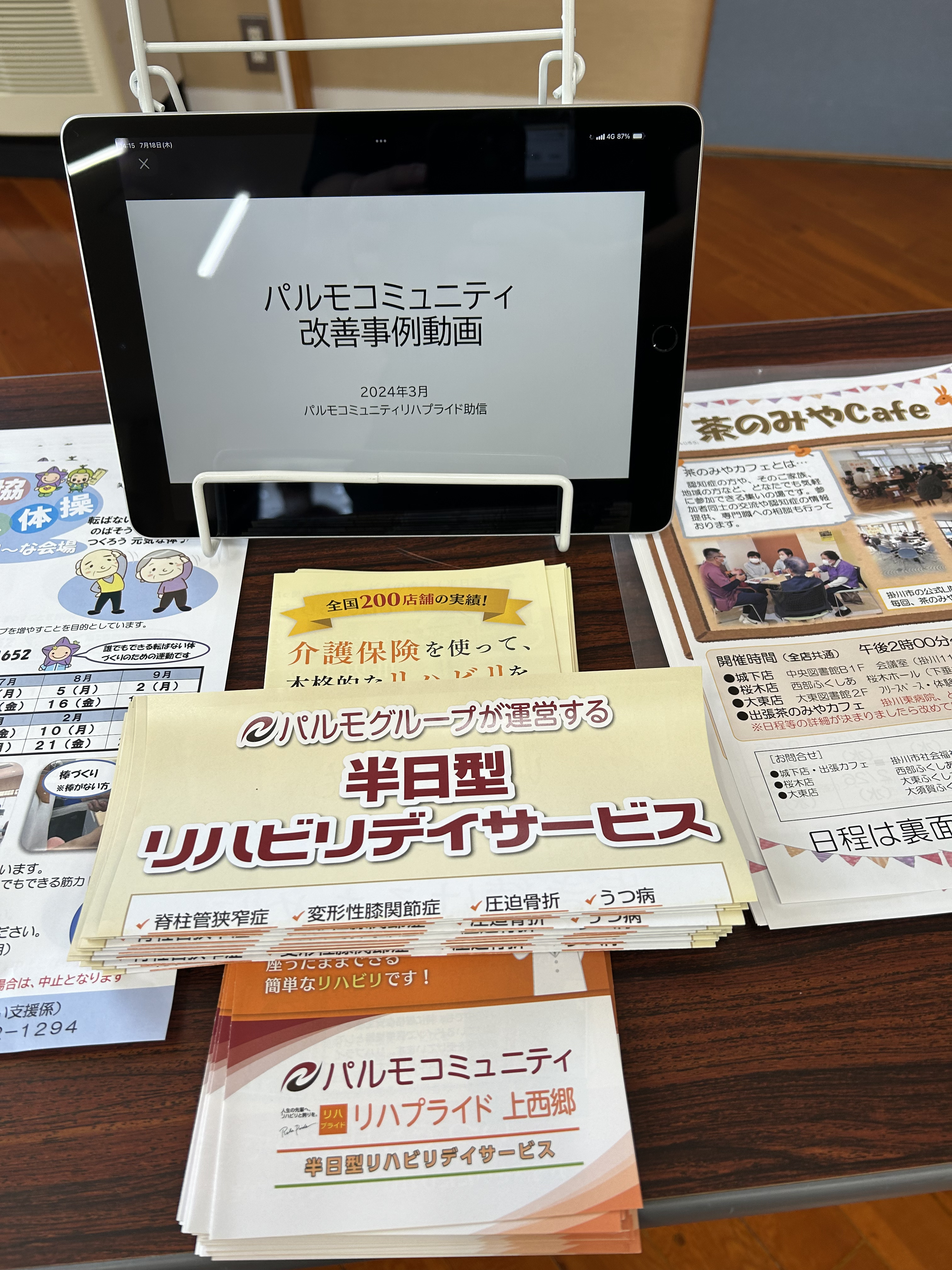 パルモコミュニティ リハプライド上西郷は、掛川の西部地域に事業所があることもあり、参加されている方や民生委員様、運営協力されている方に、事業所パンフレットをお配りし、ご紹介をさせていただきました!