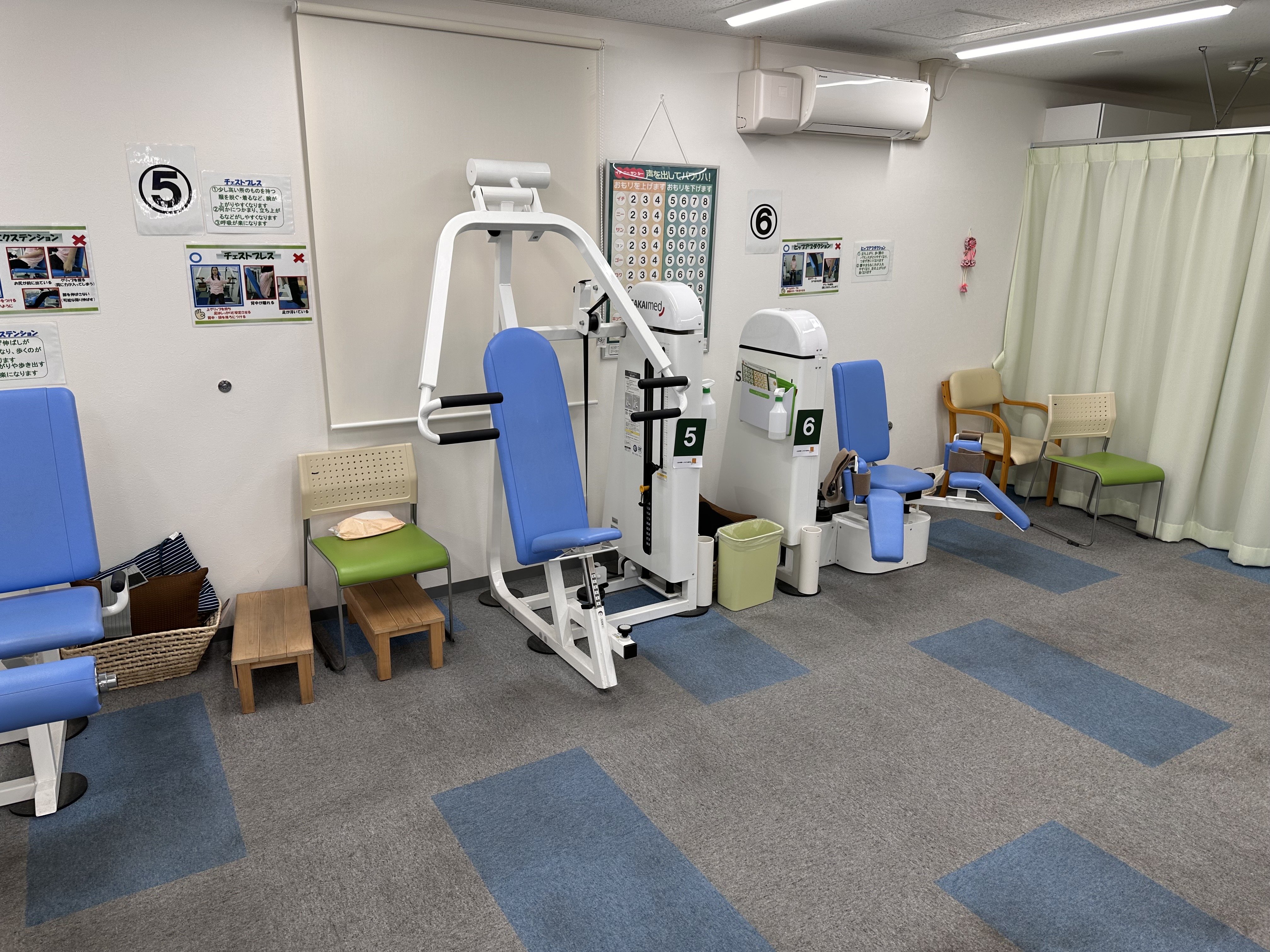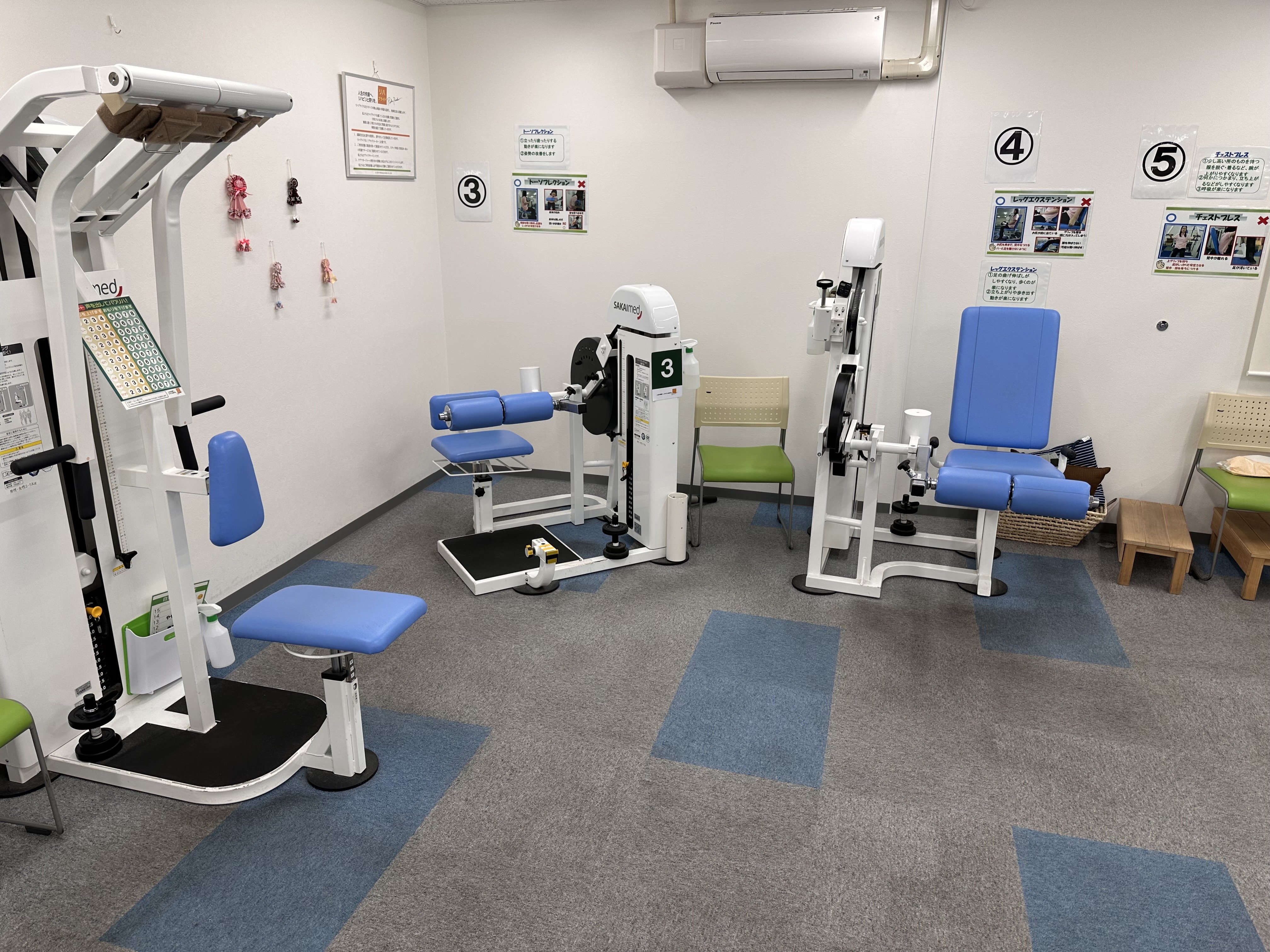 A 私たちのデイサービスでは、食事や入浴の環境はございませんが、マシンを使って機能訓練(リハビリ)を行います。ご自宅ではなかなかできない運動を3時間15分の時間を通じて、取り組んでおります。心身機能を維持改善して、寝たきりや閉じこもりを予防します。